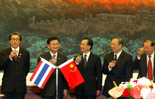 中新網(wǎng)7月1日電 據(jù)新華網(wǎng)報道,在中泰兩國建交30周年之際,10項雙邊經(jīng)貿(mào)合作協(xié)議于1日在北京簽署,項目內(nèi)容涉及能源、礦產(chǎn)、食品、零售等多個領(lǐng)域。國務(wù)院副總理回良玉和泰國總理他信共同出席了簽字儀式。