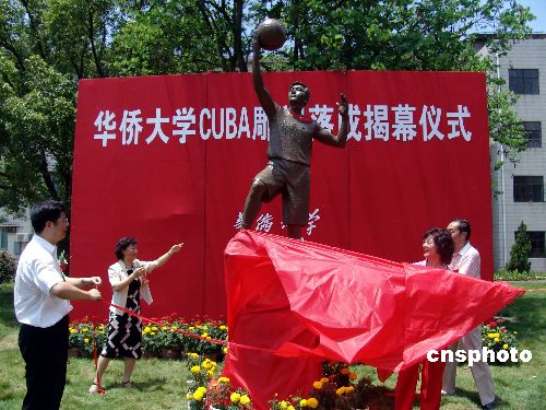 | 七月二日上午,由華僑大學(xué)香港校友會(huì)捐贈(zèng)給母校的CUBA標(biāo)志性雕塑揭幕儀式在該校的春華園內(nèi)舉行。據(jù)雕塑的設(shè)計(jì)者——華僑大學(xué)藝術(shù)系孫德明老師介紹,該雕塑由華僑大學(xué)香港校友會(huì)捐資十三點(diǎn)五萬元,歷時(shí)一個(gè)多月建造的。雕塑高三點(diǎn)四米,以華大學(xué)生為原型,設(shè)計(jì)成具像、動(dòng)態(tài)的單手投籃的動(dòng)作,體現(xiàn)了當(dāng)代大學(xué)生積極向上、拼搏的精神風(fēng)貌。作者:石勇