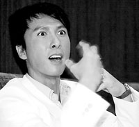 中新網7月4日電 據北京晨報報道,昨天晚上,七劍中最鋒利的“由龍劍”——甄子丹來到北京,接受京城媒體的采訪。甄子丹身著白色西裝,用粵式普通話跟在場記者打招呼。在現場,甄子丹和記者聊起了《七劍》、武功和功夫片。不同于電影中一貫的冷酷和面無表情,閑聊時的甄子丹不時露出笑容,顯得很是親切。