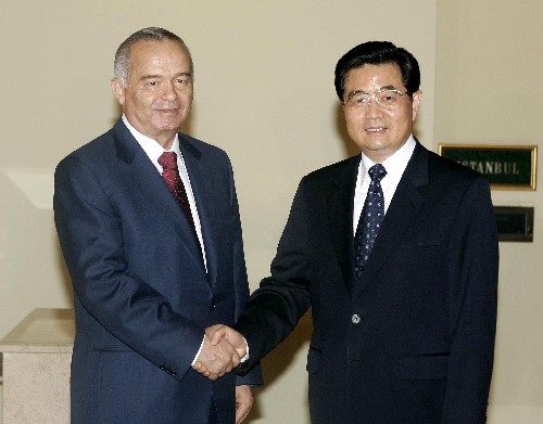 兩國元首還就中亞地區(qū)形勢(shì)交換了看法。胡錦濤強(qiáng)調(diào)指出,中國一貫尊重并支持烏茲別克斯坦等中亞各國自主選擇的發(fā)展道路,支持他們?yōu)榫S護(hù)國家安全、地區(qū)和平穩(wěn)定所做的努力?ɡ锬蚋叨仍u(píng)價(jià)中國對(duì)中亞地區(qū)的政策,表示愿同中方加強(qiáng)在雙邊和上海合作組織等多邊框架內(nèi)的合作,維護(hù)地區(qū)穩(wěn)定、促進(jìn)共同發(fā)展。