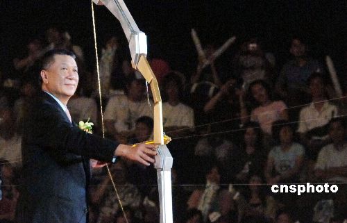 開(kāi)幕式上澳門特首何厚鏵扳弓射箭點(diǎn)燃圣火