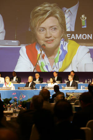 7月6日,美國(guó)參議員、前第一夫人希拉里·克林頓進(jìn)行申奧陳述,支持紐約成為2012年奧運(yùn)會(huì)的主辦城市。圖:路透社