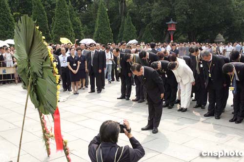 廣州的悶熱天氣讓西裝革履的訪問(wèn)團(tuán)成員在近三十分鐘的拜祭活動(dòng)中汗流浹背。郁慕明沒(méi)有去擦臉上流淌的汗水,他說(shuō):流汗不足矣,過(guò)去年輕人流血帶來(lái)了民族的興旺,我們今天的人應(yīng)該深思,進(jìn)而帶來(lái)團(tuán)結(jié)的局面。