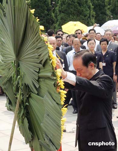 中新網(wǎng)廣州7月7日電(記者趙海燕)臺(tái)灣“新黨紀(jì)念抗日戰(zhàn)爭(zhēng)勝利六十周年大陸訪問(wèn)團(tuán)”七日上午拜謁了黃花崗七十二烈士陵園。在這里,除了尋覓和緬懷中華民族的浩然之氣,新黨大陸訪問(wèn)團(tuán)還得到了廣州市民的掌聲和歌聲。