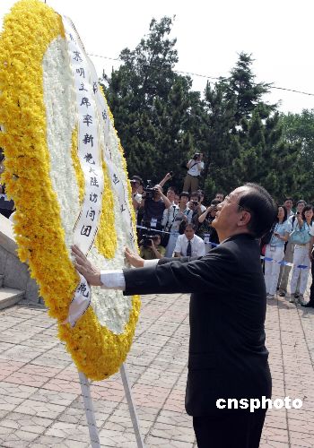新黨主席郁慕明率領(lǐng)的臺(tái)灣新黨“民族之旅”訪問(wèn)團(tuán)七月九日在大連向旅順萬(wàn)忠墓敬獻(xiàn)花圈。萬(wàn)忠墓是中日甲午戰(zhàn)爭(zhēng)旅順殉難同胞的墓地。一八九四年十一月二十一日,日軍侵入旅順市區(qū),滅絕人性地進(jìn)行了四天三夜大屠殺,我近兩萬(wàn)同胞慘遭殺害,遇難者尸體被集體焚燒后叢葬于此。作者:毛建軍