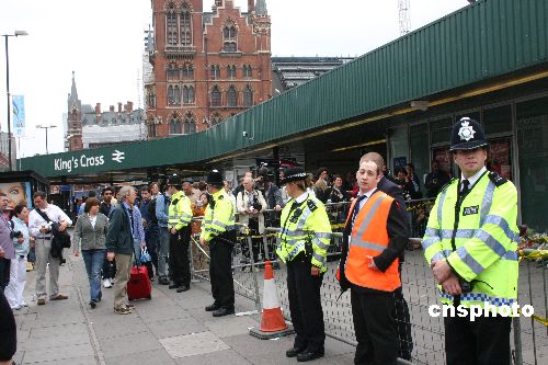 當?shù)貢r間七月九日,在倫敦國王十字地鐵站前,仍有大批警察戒備。作者:齊彬