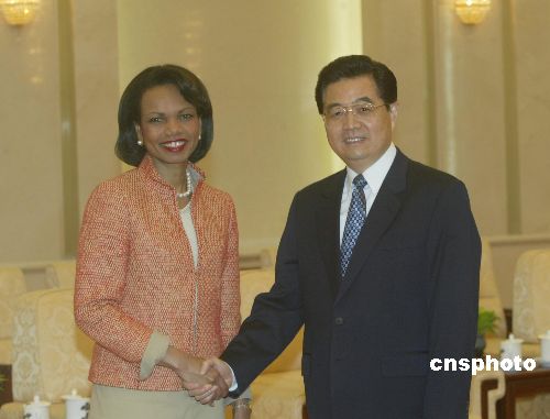 圖:胡錦濤會(huì)見美國(guó)國(guó)務(wù)卿賴斯