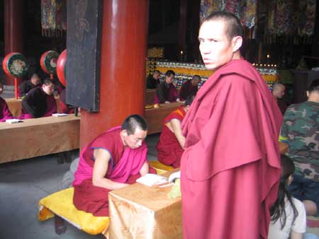 據(jù)介紹,普寧寺僧侶一日的佛事活動包括每日上一遍殿,以及從上午8點至10點念誦《大悲咒》、《十小咒》、《欏嚴咒》以及《心經(jīng)》各一遍。