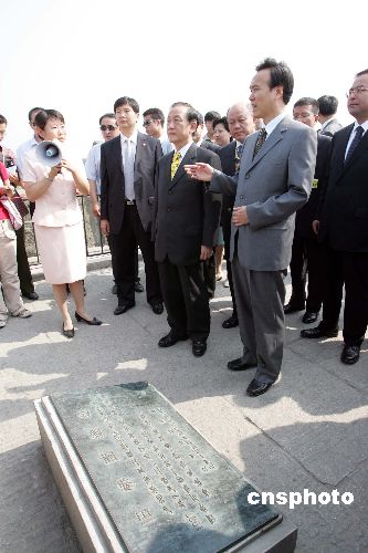 臺灣新黨主席郁慕明率領的臺灣新黨“民族之旅”訪問團,七月十一日在中共北京市委副書記龍新民的陪同下,參觀盧溝橋以及中國人民抗日戰(zhàn)爭紀念館。作者:毛建軍
