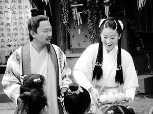 其實(shí)這段老年裝的戲原來(lái)在劇本中是沒(méi)有的,但導(dǎo)演認(rèn)為如果加一段老年戲會(huì)讓整個(gè)劇更加充實(shí),所以臨時(shí)改戲。原本是考慮讓吳宗憲和苗圃這一對(duì)戲里的小夫妻都化老妝,但可惜的是苗圃臉上的皮膚實(shí)在是太緊了,怎么化都老不了,最后只能把吳宗憲一個(gè)人扮老,苗圃只能屈就著演他孫女了。這是吳宗憲第一次以老年造型出現(xiàn)在電視熒幕上,自然很新奇,也很受期待。他一化完妝馬上跑到大家面前展示,但還不改貧嘴本性自夸說(shuō)自己老了都這么帥,所以又是拍照留念,又是擺造型的,惹得劇組人員哈哈大笑。(蓋云飛)