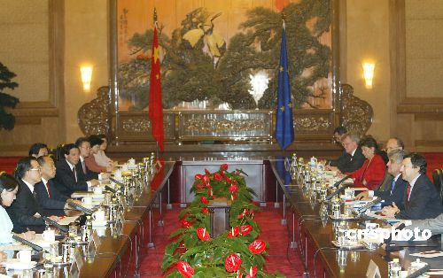 七月十四日,中國國務(wù)院總理溫家寶與歐盟委員會主席巴羅佐在北京舉行會談。作者:廖文靜