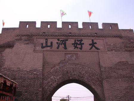 大境門門墻高12米,底長13米,寬9米,有木質鐵皮大門兩扇。門楣上“大好河山”四個大字由當時的察哈爾都統(tǒng)高維岳書寫。