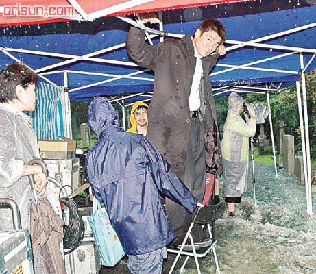 又淋雨又浸洪水的華仔,全身盡濕拍了近個多小時,導(dǎo)演一叫Cut,他馬上沖去附近的酒店沖涼。華仔說﹕“最初想拍出來的東西漂亮一點,所以想也不想便坐下去,可是愈坐愈不安,愈坐愈難過,山上沖下來的水,不知當(dāng)中夾雜了什么,全身都是泥﹔而且地點又是墳場……不沖涼不成!