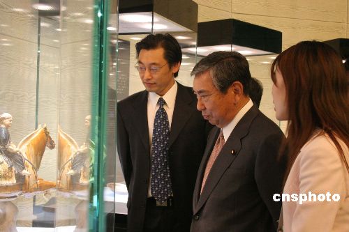 河野洋平依次參觀了館內(nèi)陳列的豚尊、唐三彩“騰空馬”等八件國寶級(jí)文物,對(duì)三千六百多年前中國就能制作出如此精美的青銅酒器大為驚嘆,并稱奔馬造型的唐三彩十分罕見。在紫檀齋,河野洋平被其中的仿明清宮廷家具深深吸引,對(duì)云朵和海浪交錯(cuò)鏤空的九龍戲珠大如意大為贊賞。當(dāng)聽說雕工精細(xì)的大畫筒是二十個(gè)雕工藝人足足用了三年時(shí)間才雕刻而成時(shí),他更是贊不絕口。