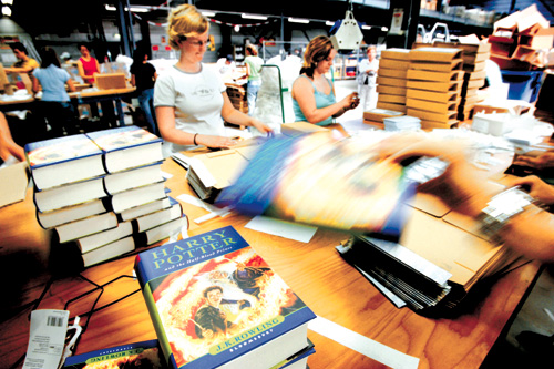 隨著第六集公開發(fā)售的時刻臨近,哈利波特狂熱周五席卷美國。預(yù)料約四百萬人午夜將會聚集在全國各地五千多家計劃舉行新書發(fā)售派對的書店。網(wǎng)上書店亞馬遜銷售部經(jīng)理勞拉.波爾科說:“我們對此早有準(zhǔn)備,因為以前已經(jīng)經(jīng)歷過。”至周四為止,亞馬遜在美國國內(nèi)已經(jīng)接到近九十萬個定購。這個數(shù)字打破○三年六月《哈利波特》第五集發(fā)售時的七十八萬九千個定購的紀(jì)錄。