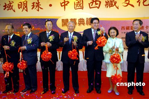 曾蔭權(quán)代表香港特別行政區(qū)政府,向組辦西藏文化周的全體成員、西藏活佛團、西藏自治區(qū)歌舞團、文物珍寶展覽團的專家、藏學(xué)家,以及所有參與這個盛事的朋友,表示熱烈的歡迎。