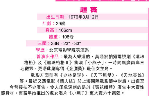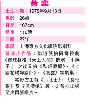 趙薇與黃奕在演藝路上,可謂甚有淵源,兩人先后飾演瓊瑤筆下《還珠格格》的“小燕子”角色,近期則一同演繹三十年代女性,黃奕演出電視版《長(zhǎng)恨歌》、趙薇則演出電視劇《京華煙云》;及至下月,兩人更會(huì)“撞到正”齊齊推出個(gè)人大碟,雖然要到推出時(shí)才知鹿死誰(shuí)手,但在情場(chǎng)上兩人已率先較量,看來(lái)能在公眾場(chǎng)合拖手的“新歡”黃奕勝算較大!