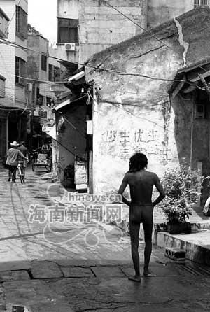 7月4日上午11點(diǎn)20分,記者采訪路過海口市三亞街,剛走到博愛街道辦三亞居委會門口,就聽到不遠(yuǎn)處傳出一聲女子的尖叫。記者循聲望去,只見一名年輕女子手上拿把傘,驚慌地從小巷跑出來。在她的身后,緊跟著一名赤身裸體的男人,披著篷亂的長發(fā)。見女子跑到人多的地方,追她的男子沒有跟出來,而是轉(zhuǎn)身朝三亞下街方向走去。記者正欲報(bào)警,請警方來控制追女人的赤裸瘋子,對方已跑得沒了影。