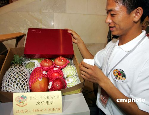 七月二十日,在上海舉行的臺灣農(nóng)產(chǎn)品展銷會(huì)上,精明的上海臺商及時(shí)把握商機(jī),將臺灣水果與月餅組合成中秋禮盒,及時(shí)地搭上“銷售快車”,成為展會(huì)亮點(diǎn)之一。作者:潘索菲