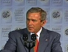 布什還指出,恐怖分子正在試圖通過殘殺無辜的人們來試圖撼動(dòng)自由世界的意志。