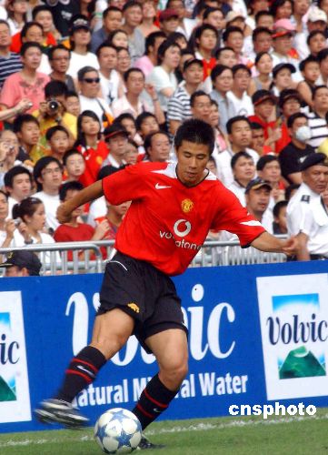 中國(guó)球員董方卓隨同曼聯(lián)進(jìn)行“亞洲之旅”,23日在香港大球場(chǎng)與香港隊(duì)作友誼賽。目前他被球隊(duì)租借到比利時(shí)安特衛(wèi)普隊(duì)效力。作者:譚達(dá)明