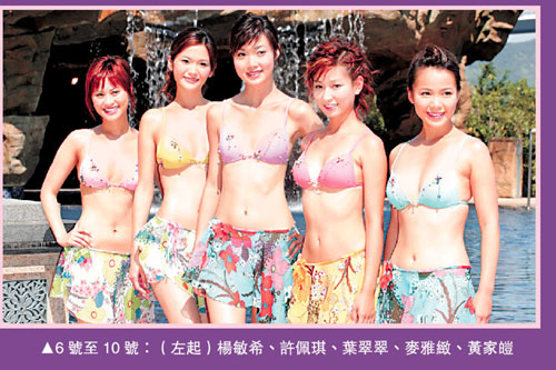 中新網(wǎng)7月26日電 據(jù)香港《大公報(bào)》報(bào)道,二十位候選港姐昨日在珀麗灣貝殼廣場拍攝“港姐謝師宴”及個(gè)人介紹宣傳片,眾佳麗分別穿上大會(huì)安排的三點(diǎn)式泳衣,在泳池會(huì)見傳媒。由于今次已是港姐穿著第五套泳衣示人,相比過往略為多些,大會(huì)方面亦承認(rèn),節(jié)目監(jiān)制何小慧表示:“港姐的口號是『美麗由心出發(fā)』,希望能夠表現(xiàn)到她們有愛心的一面,更突出美麗的一面讓觀眾欣賞,加上今年的夏天特別炎熱,故此會(huì)越穿越少布呢!”至于大會(huì)將為眾佳麗度身造訂多一套泳衣,好讓佳麗們于決賽當(dāng)晚穿。