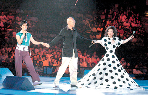 中新網(wǎng)7月27日電 據(jù)香港《大公報(bào)》報(bào)道,第二場“金光燦爛徐小鳳2005演唱會”上,汪明荃和羅家英拍拖捧場,在小鳳姐邀請下,更手拖手上臺客串,為演唱會帶起高潮,氣氛熱烈。