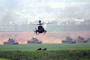 中新網(wǎng)7月28日電 臺(tái)軍“漢光21號(hào)”演習(xí)27日在臺(tái)中空軍清泉崗基地舉行,除陳水扁、呂秀蓮和謝長廷都到場外,美國國防情報(bào)局官員及日本退役人員也出現(xiàn)在觀禮臺(tái)上。