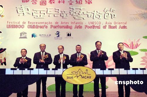 “聯(lián)合國(guó)教科文組織東亞兒童藝術(shù)節(jié)”,廿八日在澳門文化中心揭幕,有來自中國(guó)、日本、朝鮮、韓國(guó)、蒙古及澳門、香港等國(guó)家和地區(qū)兒童代表五百多人參加,澳門特區(qū)行政長(zhǎng)官何厚鏵、聯(lián)合國(guó)教科文組織總干事松浦晃一郎等主持開幕式。作者:梁永強(qiáng)