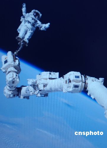 八月七日在“發(fā)現(xiàn)”號(hào)航天飛機(jī)告別國(guó)際空間站向著地球返航時(shí),美國(guó)航空航天局(NASA)播發(fā)了精彩照片回顧:技高膽大的宇航員羅賓遜完成太空行走,站在機(jī)械臂頂端如太空雜技演員。作者:賈國(guó)榮(翻拍)