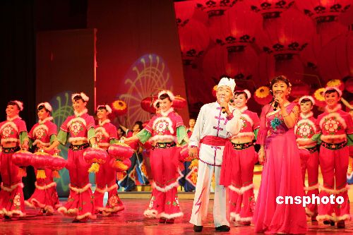 八月六日晚,山西太原舉行紀(jì)念中國(guó)人民抗日戰(zhàn)爭(zhēng)暨世界反法西斯戰(zhàn)爭(zhēng)勝利六十周年山西民歌演唱會(huì)《在太行山上》。來(lái)自山西省內(nèi)各地的藝術(shù)家及民間歌手會(huì)聚一堂,用山西人最熟悉的音樂(lè)一路牽引人民的思緒,重回六十年前的那段光輝歲月。圖為民歌《掛紅燈》。作者:張?jiān)?/p>