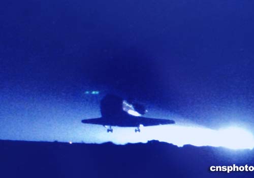 真是“起飛時難降也難”,美國愛德華茲空軍基地沙漠跑道九日的黎明靜悄悄,當“發(fā)現號”航天飛機沖破大氣層的烈熾時,舉世矚目----但它終于在夜幕中閃著亮光,英雄般身負傷痕呼嘯而降......掌聲響起來。