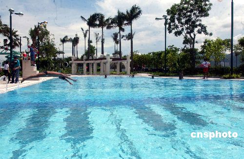 香港迪斯尼9日開放兩間酒店讓傳媒參觀。圖為迪斯尼好萊塢酒店的游泳池。作者:譚達明