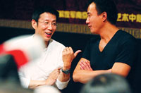 中新網(wǎng)8月11日電 北京晨報(bào)報(bào)道,40集大型歷史劇《臥薪嘗膽》昨日舉行了新聞發(fā)布會(huì)。兩大影帝陳道明、胡軍繼《一江春水向東流》之后再度攜手,一個(gè)扮勾踐,一個(gè)演夫差,將為觀眾再現(xiàn)驚心動(dòng)魄的“吳越之爭”。而陳道明、胡軍兩人在現(xiàn)場配合默契,一唱一和,上演了一出影帝版“二人轉(zhuǎn)”。