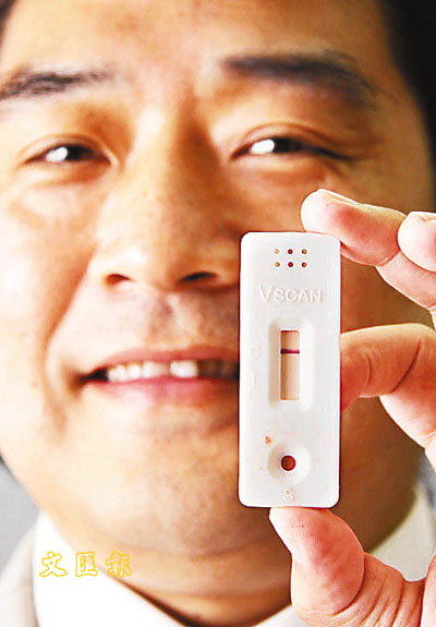 天智集團(tuán)副總裁蔣凌輝說(shuō),VScan愛(ài)滋病檢驗(yàn)器是一套自助的愛(ài)滋病抗體測(cè)試器,由美國(guó)研制成功,已完成了美國(guó)FDA的所有測(cè)試。這套測(cè)試器能有效測(cè)出HIV1及HIV2的抗原,以及初期出現(xiàn)的抗體IGM,而所有的測(cè)試結(jié)果會(huì)在15分鐘完成。