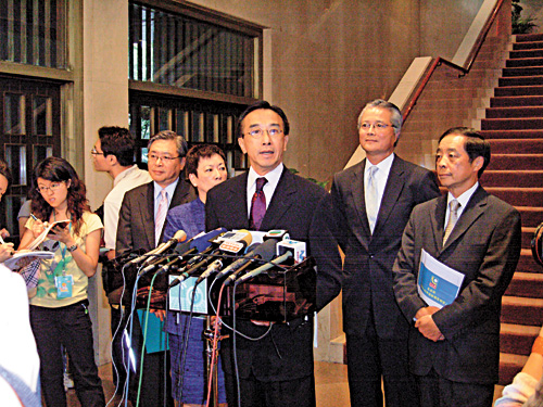 獲安排第一個(gè)會見的自由黨向曾蔭權(quán)提及有關(guān)政改、經(jīng)濟(jì)發(fā)展、空氣質(zhì)素等問題,建議增加選委會人數(shù)至一千二百人,選委會選民也應(yīng)由目前的十六萬增至三十二萬。并分別增加五個(gè)功能組別及直選席位,分配予專業(yè)界、商界及地區(qū)人士。以及重新考慮參照新加坡做法,興建賭場。