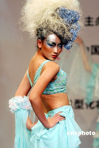 2006中國發(fā)型化妝潮流趨勢(shì)發(fā)布會(huì)8月14日在北京舉行,模特展示的化妝造型以“歡顔、影舞、暗香、幻想”為主題,展現(xiàn)女性的不同氣質(zhì)。一年一度的潮流趨勢(shì)發(fā)布由中國發(fā)型化妝藝術(shù)研創(chuàng)中心創(chuàng)作演出。作者:張宇