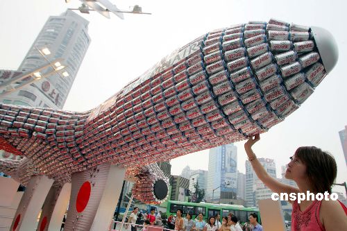 | 八月十六日,一架由數(shù)千罐“健怡可口可樂”組成的港龍航空A330飛機(jī)模型登陸上海港匯廣場(chǎng),該飛機(jī)模型長(zhǎng)八米、寬七點(diǎn)五米,完全按照真實(shí)的港龍A330飛機(jī)一比八比例打造,并由數(shù)十名能人巧匠花費(fèi)十二天的時(shí)間,用“健怡可口可樂”易拉罐精心堆砌而成。這是可口可樂公司攜手港龍航空,首度合作推出今夏精彩紛呈的網(wǎng)上有獎(jiǎng)競(jìng)猜促銷活動(dòng),惟妙惟肖的造景飛機(jī)究竟用了多少罐“健怡可口可樂”搭建而成?作者:潘索菲