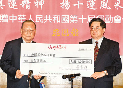 中新網8月18日電 據香港文匯報報道,全國人大常委、香港金利來集團主席曾憲梓,17日向第10屆全國運動會組委會捐款100萬元人民幣,以實際行動支持江蘇省舉辦全國運動會。