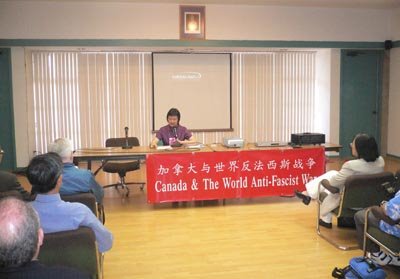 圖片展期間,中國總領(lǐng)館邀請有關(guān)學(xué)者和卑詩省抗日戰(zhàn)爭史實維護會的負責(zé)人舉辦三場抗戰(zhàn)史實講座,主題是《加拿大與世界反法西斯戰(zhàn)爭》。中新社記者呂振亞攝
