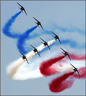 中新網(wǎng)8月21日電 據(jù)法新社報(bào)道,在朱科夫斯基舉行的本年度莫斯科國(guó)際航空展上,法國(guó)空軍特技表演隊(duì)“法蘭西巡邏兵”特技飛行表演隊(duì)正在展示他們令人叫絕的空中表演技術(shù)。