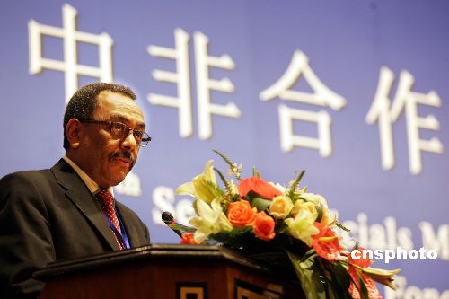 | 8月22日,為期兩天的中非合作論壇第四屆高官會在北京開幕,來自中國和非洲46個國家的代表、6個非洲地區(qū)組織的觀察員以及非洲駐華使節(jié)出席了開幕式。中非合作論壇是中國和非洲于2000年共同創(chuàng)立的集體對話與合作機制,已分別舉辦了兩屆部長級會議。圖為論壇共同主席國、埃塞俄比亞政府論壇特使海爾基洛斯·格塞塞在開幕式上致辭。作者:武仲林