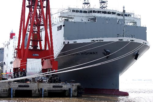 圖:國內(nèi)首制5000車位汽車滾裝船江蘇南通面世