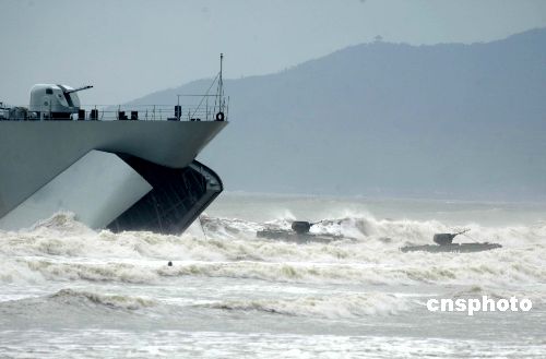 今天對參演的兩棲部隊(duì)來說,可不是個(gè)好日子。海上的風(fēng)力6到7級,浪高2.5至3米,大雨。