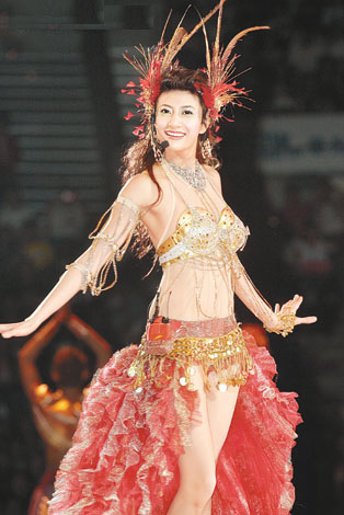 中新網(wǎng)8月27日電 據(jù)香港媒體報道,《譚詠麟歌者戀歌濃情三十年演唱會》前晚在紅館開鑼,首場嘉賓有劉德華和以“火美人”造型出現(xiàn)的黃伊汶(Emme),當(dāng)Emme和阿倫(譚詠麟)跳貼身辣舞時,她的舞衣卻不慎扣到阿倫衫上的飾物,互相拉扯下Emme的胸罩幾乎被扯甩走光,Emme即用手按著,她事后表示:“其實(shí)有打底,所以不擔(dān)心走光!