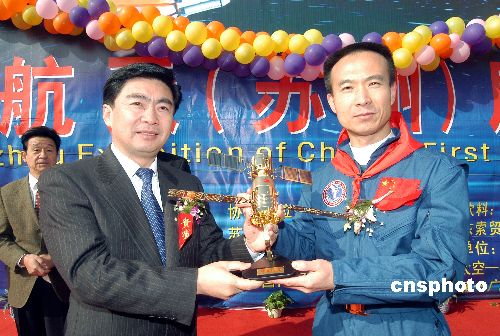 |   12月4日,費俊龍返鄉(xiāng)助陣“航天展”.當(dāng)日,為期一個月的“飛向太空——中國載人航天(蘇州)展”在蘇州工業(yè)園區(qū)玲瓏灣拉開帷幕。此次航天展共分為運(yùn)載火箭、載人航天、中外衛(wèi)星、航天科技長廊等七個展區(qū),匯集了神舟飛船、運(yùn)載火箭、登月艙等百余件最具代表性的航天實物和模型。作者:徐志強(qiáng)  |  |  |