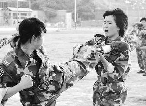 齊耳的短發(fā),颯爽的英姿,個個身輕似燕,順著水管迅速“躥”到30多米的高處,瞬間順勢翻飛凌空而下。這是武警江西總隊女子偵察隊7日上午進行特勤演練的一個鏡頭。