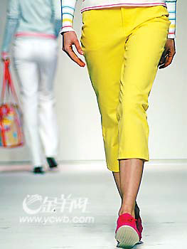 強(qiáng)調(diào)休閑的ESCADASPORT在本季大量使用的深藍(lán)色調(diào)中,用卷邊五分褲展現(xiàn)出一種制服誘惑,五分長度與耀眼銅扣共同書寫著都市女性的非凡個(gè)性。同樣是ESCADASPORT一款街頭風(fēng)格的寬腿七分褲,褲腳被高高束起,亮粉的色彩與清爽的白色上衣最是相配,嫩黃七分褲則用粉紅便鞋帶出春天的味道。這樣的搭配,怎么穿都很青春。