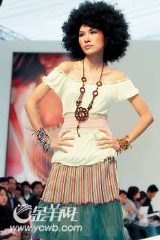 要穿出非洲風(fēng)情,咖啡色自是少不了,這對黃皮膚的亞洲女性無疑是一大挑戰(zhàn)。對此,Kookai香港及內(nèi)地地區(qū)品牌經(jīng)理認(rèn)為:以往咖啡色給人的感覺是不適合黃皮膚人群,但隨著多種元素混搭的出現(xiàn),這樣的擔(dān)憂已不復(fù)存在。比如可以用白色項(xiàng)鏈或是顏色鮮亮的手鐲、鞋履來點(diǎn)睛,合適的面部彩妝也能迎合民族Look的需要,而不少品牌也做到了為亞洲人因地制宜地引入民族風(fēng)格服飾,今季市場反應(yīng)出乎意料地好,就是最好的證明。