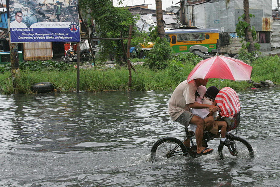 7月16日,一場熱帶風暴當天襲擊了菲律賓首都馬尼拉。這場風暴不但帶來大量降水,也使城市大量積水,出行困難。